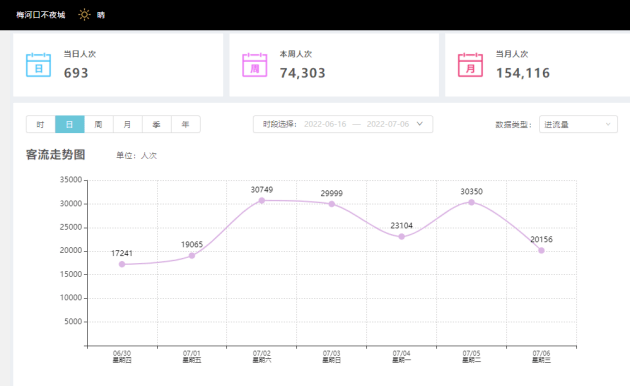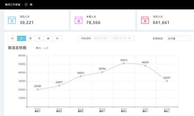 7月以来,当全国景区逐步复苏,部分景区还在挣扎时,东北不夜城以优秀的成绩单名列前茅,成为今年抢眼的文旅优等生。 炎炎夏日,暑假来临,是大多数游客出行频率最高的时期。东北的天气却一如反常,特别是吉林梅河口市,连日下雨,按照惯常,这严重影响了游客的出行方式。但是,即便下雨,街区内打伞的游客仍然摩肩接踵,络绎不绝。一周时间段内,每天超过5万的客流,甚至单日客流突破了12万人次的大关,连续四天客流突破10万人次,为文旅界做出了表率。截至8月3日,东北不夜城运营98天,客流突破300万人次。