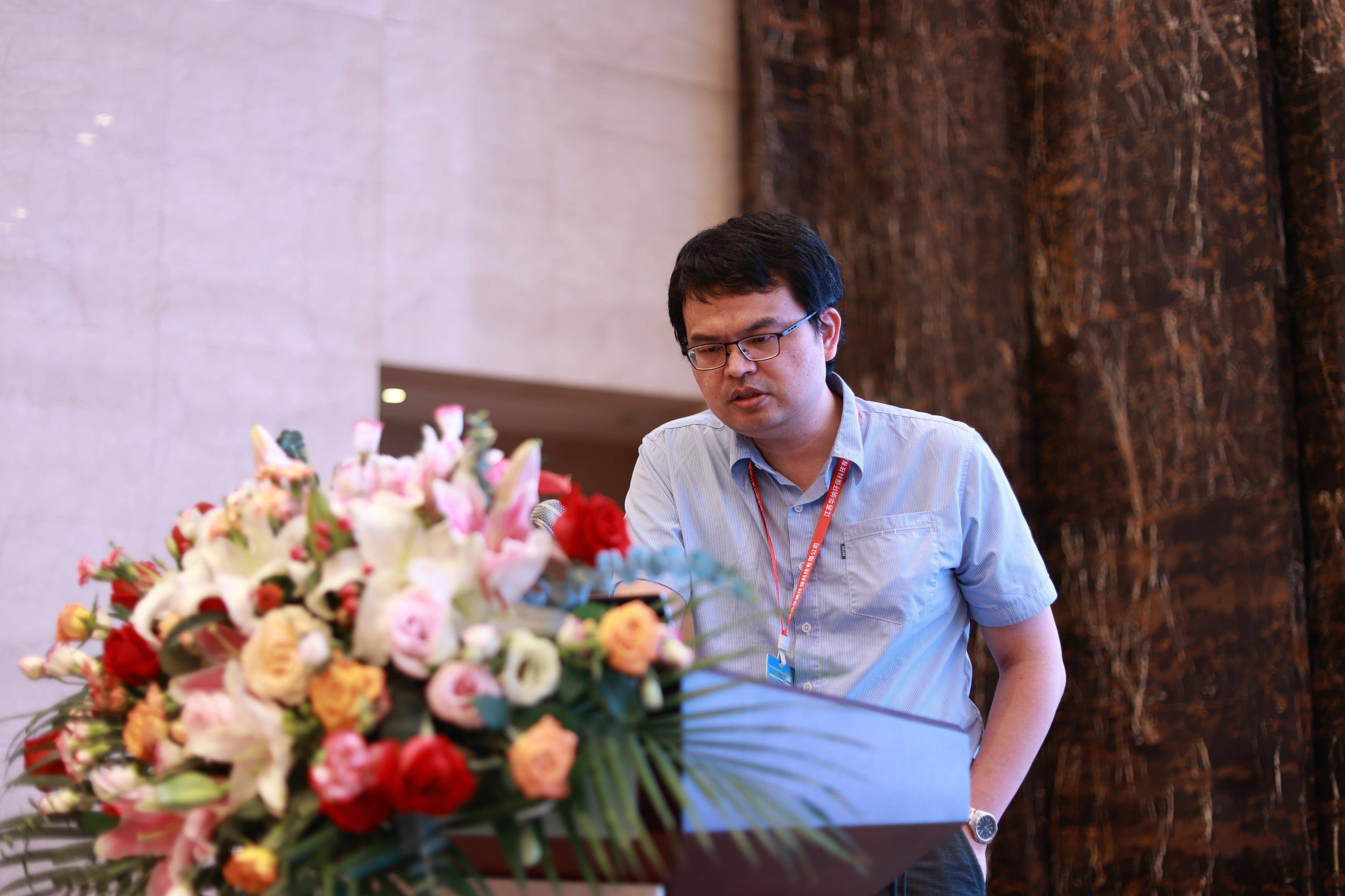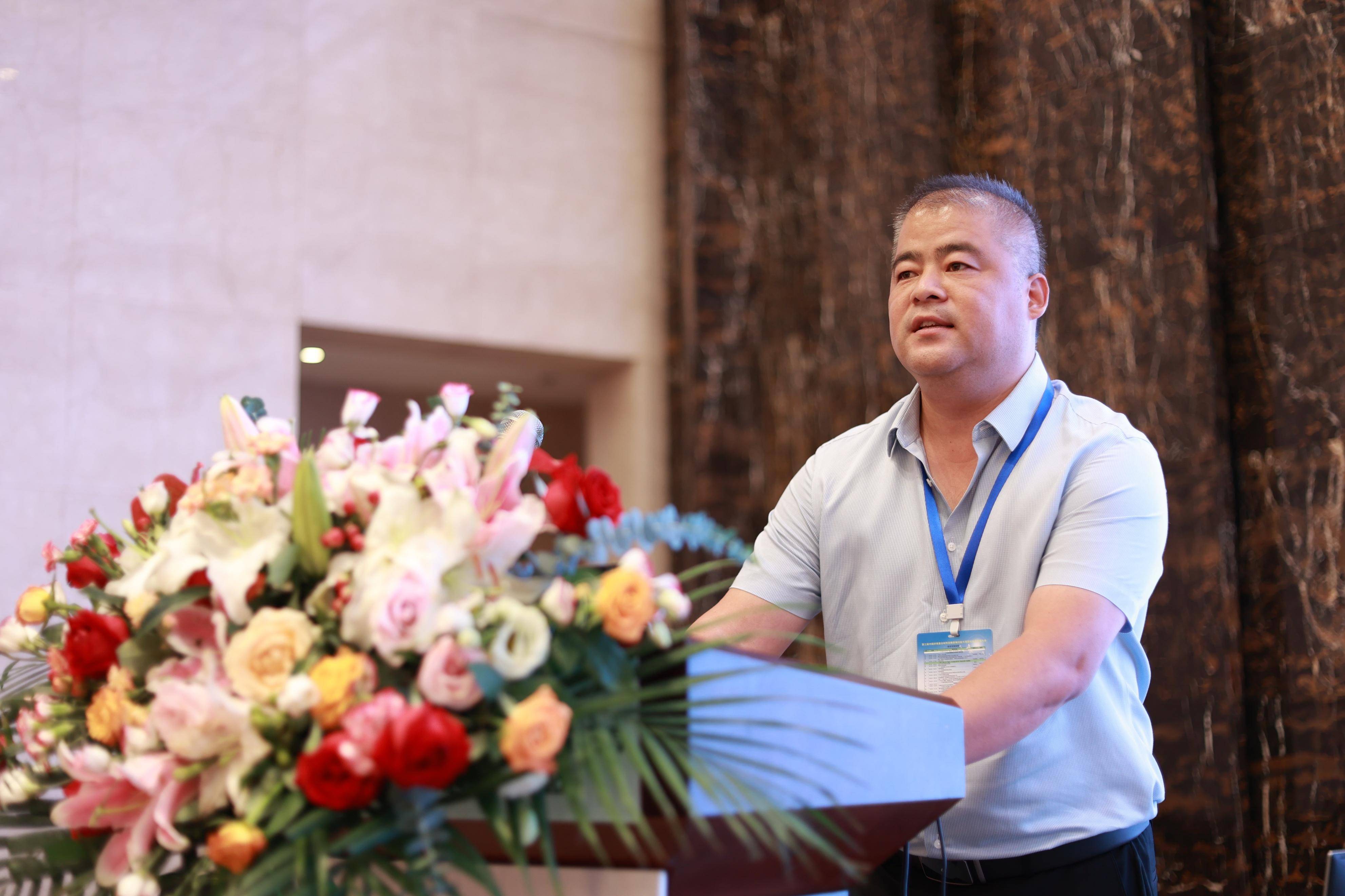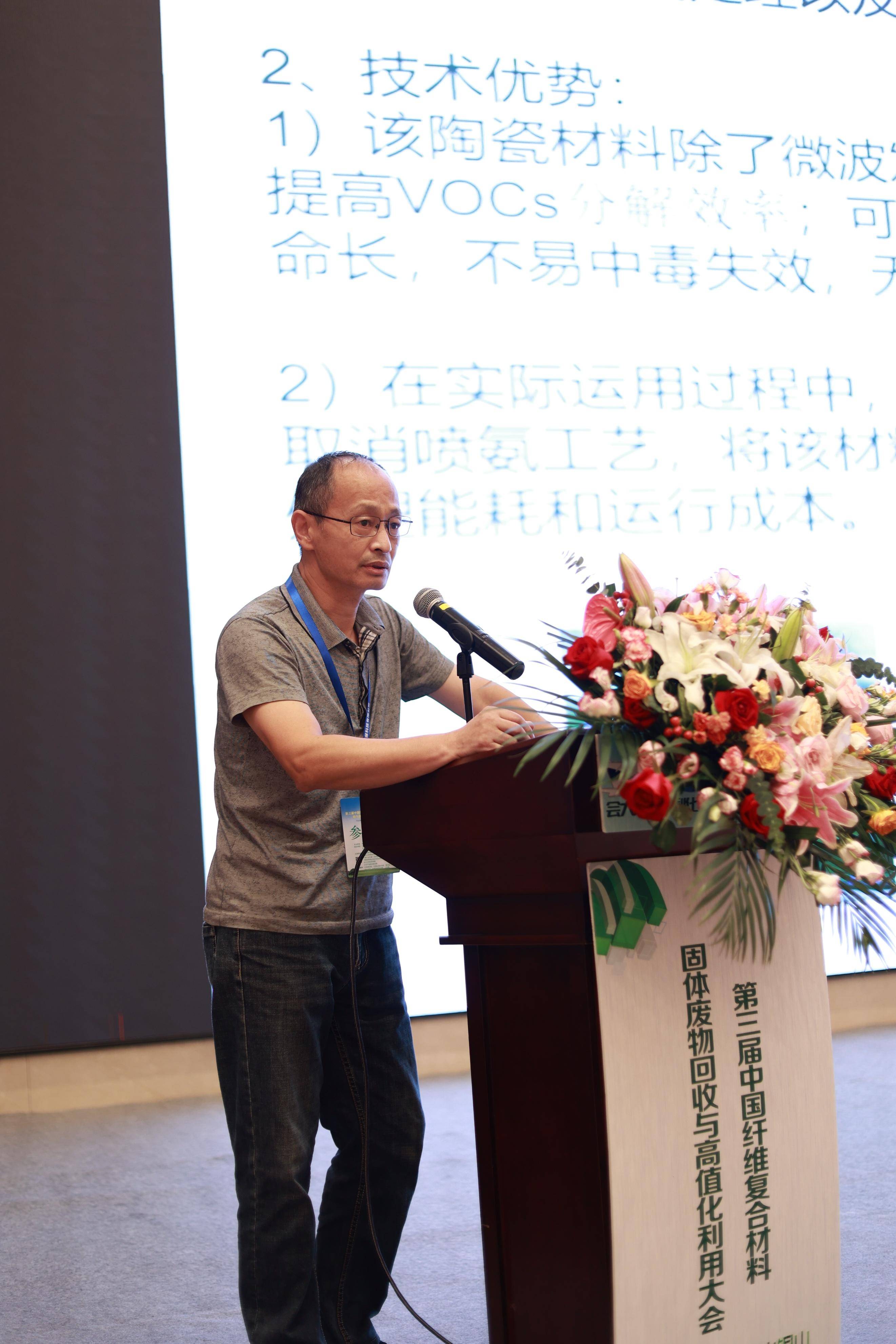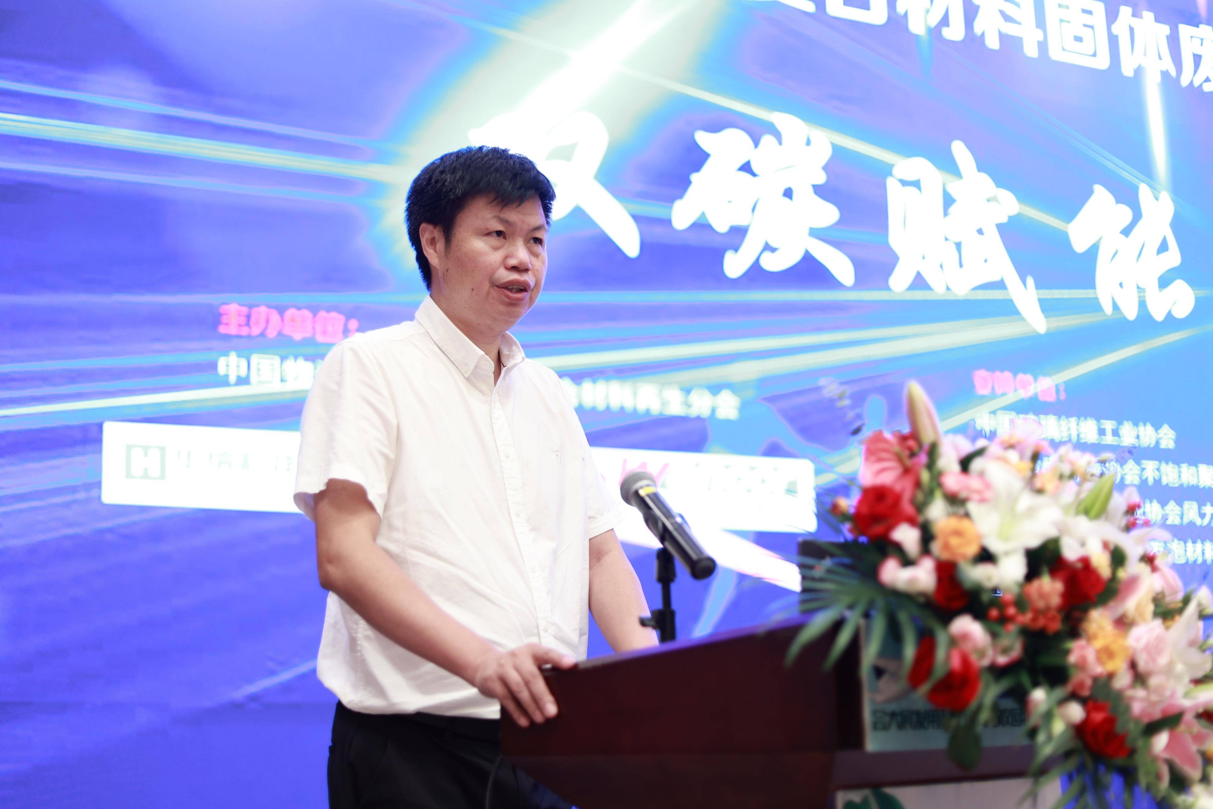 江苏华纳环保科技有限公司 总经理 白福岗 江苏华纳环保科技有限公司总经理白福岗作为企业代表上台致欢迎词。他表示,面对国家双碳目标、清洁能源的发展战略,“纤维复合材料固体废物回收与高值化利用发展大会”具有特别而深远的意义,本次大会将为推动固废回收产业的发展发挥积极的作用,也为大家带来参与和交流的机会。