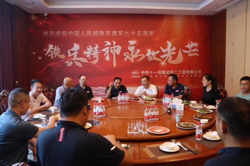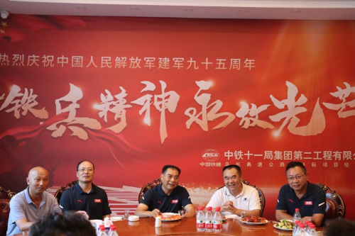 95年浴血荣光,扎实做好八一期间双拥工作,营造浓厚拥军氛围,8月1日,中铁十一局集团第二工程公司乌长高速项目部退伍老兵相聚一堂。老兵以及铁二代的同志们共同观看让人心潮澎湃的强军视频,共同唱起铁道兵志在四方的歌曲铁道兵杨超敏同志与梅刚同志回忆当年在部队的艰苦岁月不禁潸然泪下。