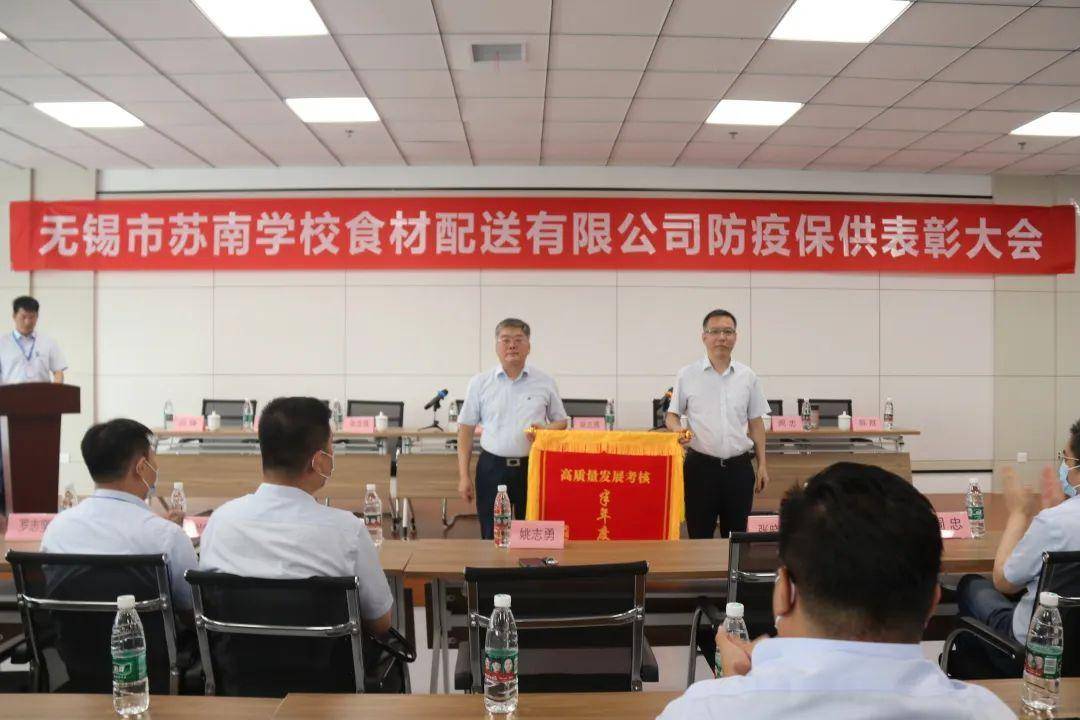伴随着一个防疫保供的温馨短片,无锡苏南食材公司全面回顾2022年上半年以来,全体员工上下一心、齐心协力、共克时艰,取得的一次又一次抗疫保供胜利的精彩瞬间。无锡产业集团党委书记、董事局主席姚志勇为无锡苏南食材公司授予市产业集团高质量发展考核“半年度流动红旗”。