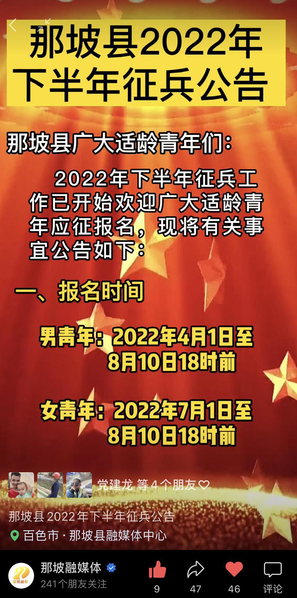 自2022年下半年征兵工作安排部署会后,那坡县人武部成立工作专班,制定实施方案,吹响征兵宣传号角,各乡(镇)党政领导亲自抓,各部门、各村通力配合,动员更多高校毕业生、应届大学毕业生及适龄青年参军入伍。