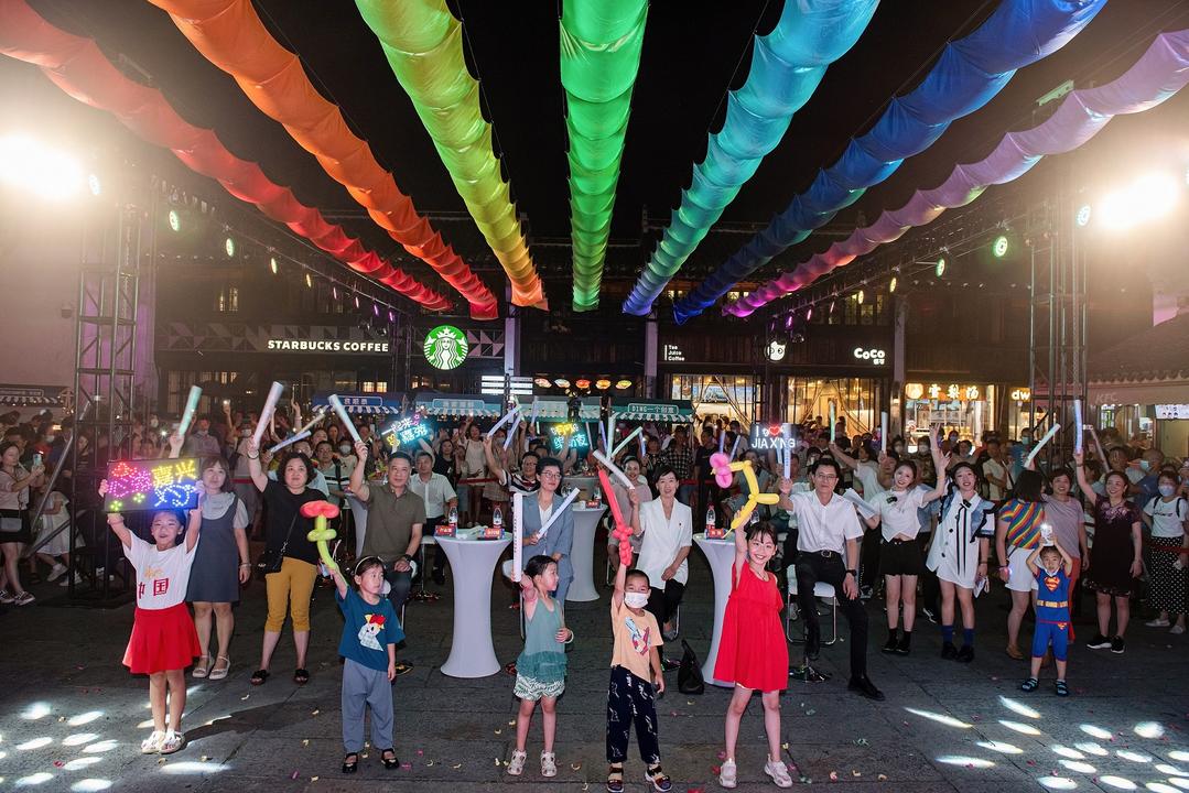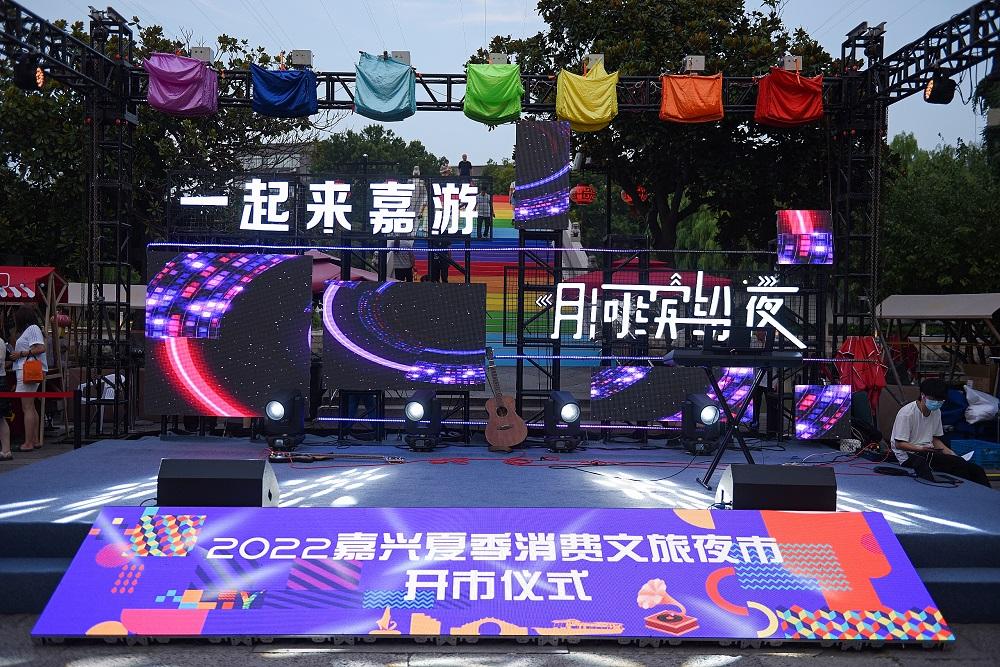 夜幕降临,华灯初上,悠曳的蝉鸣和热烈的晚风吹不散水乡悠悠情韵。伴随着盛夏的热浪,8月5日晚,“一起来嘉游 月河缤纷夜”2022嘉兴夏季消费文旅夜市推广活动在月河历史街区荷月桥广场正式启幕。 本次活动由嘉兴市文化广电旅游局、嘉兴市商务局、嘉兴市城市投资发展集团有限公司主办,嘉兴市文化馆、嘉兴市智慧旅游推广咨询中心、各县(市、区)文化旅游部门、嘉兴市城市资产经营有限公司、嘉兴市餐饮饭店行业协会、嘉兴市旅行社协会、南湖晚报承办,旨在通过百姓的心声和热闹的文旅消费夜市,带给市民游客看非遗、赏美景、逛市集、品美食的沉浸式体验,感受嘉兴的历史雅韵和新时代的繁荣。