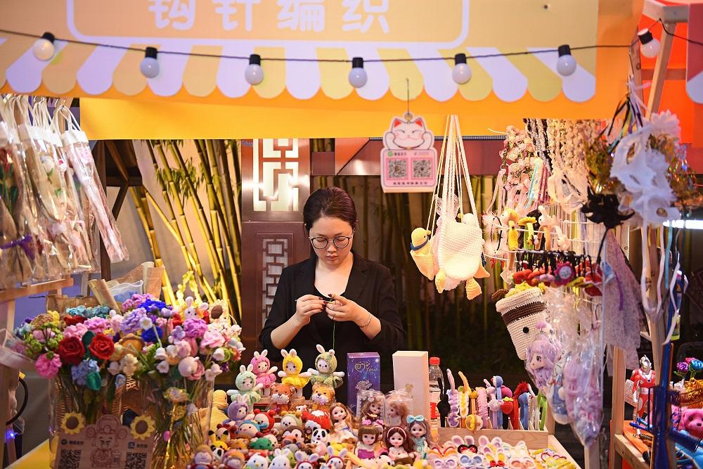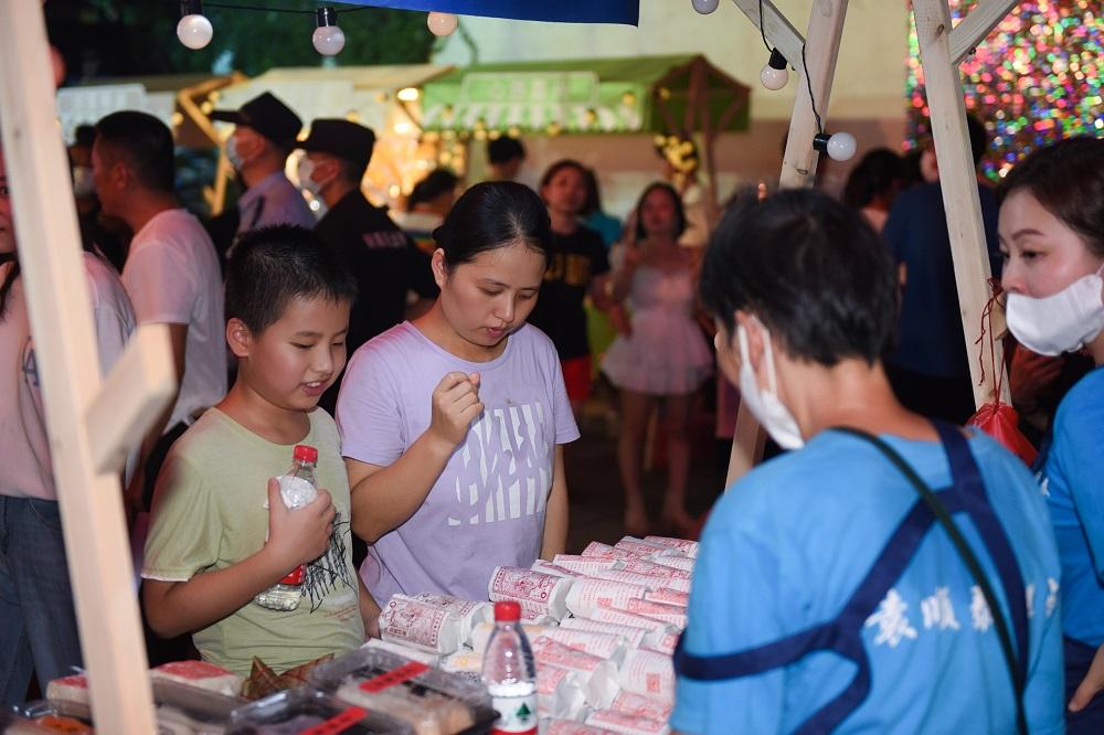 今晚,在月河文旅夜市上,姜中煌生姜、袁顺泰糕点、溜溜酱鸭、南门头春卷、桃园槜李汽水等各类美食吸引着大家一饱口福。各县(市、区)也纷纷拿出了“看家本领”,现场进行文旅产品售卖、特色非遗展示,平湖西瓜灯、海宁皮影戏、南湖菱画、草柳藤编……给市民和游客献上了一席精美的文化大餐。不仅如此,现场还有文旅好礼送不停,万元消费券免费发放,掀起活动热潮。