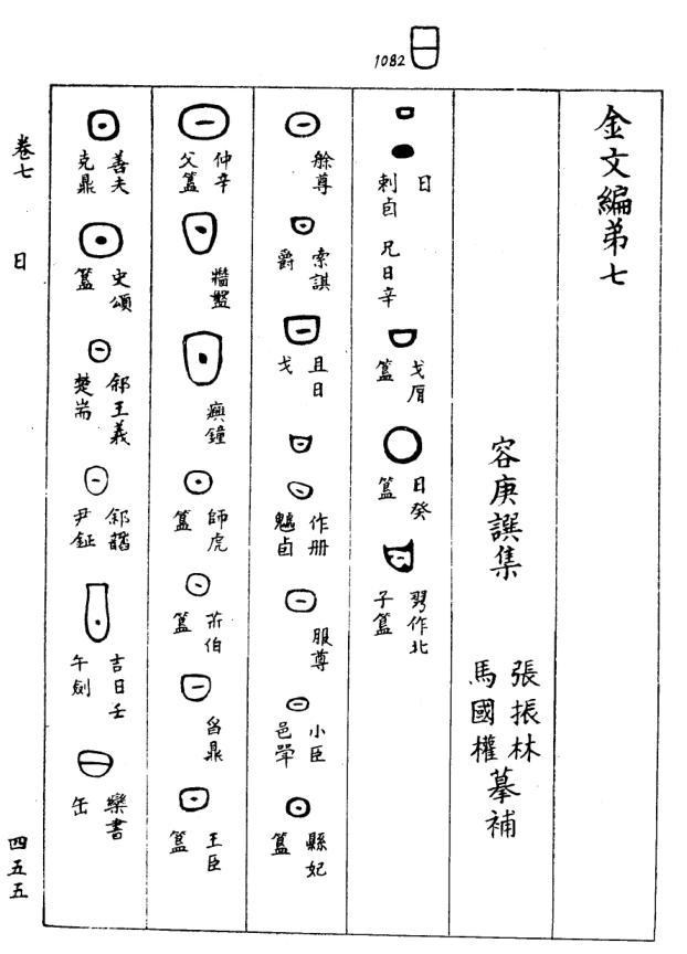 摩崖石壁“⊙”形图案 外形如“⊙”状,圆圈浑润,圆心居中。圈线的外直径63CM、内径59CM,圆点处凿有一个0.5CM深、直径5CM圆坑点。从崖壁处在山形的位置上判断,该“⊙”形排在整体图案之左首,应该是刻凿人表意的主体。“⊙”的形状如太阳状,参考容庚《金文编》第455页多款商周时期青铜器上“日”字的图形,可知图案与商周时期青铜器上所篆刻的吉金文“日”的写法一致无二。