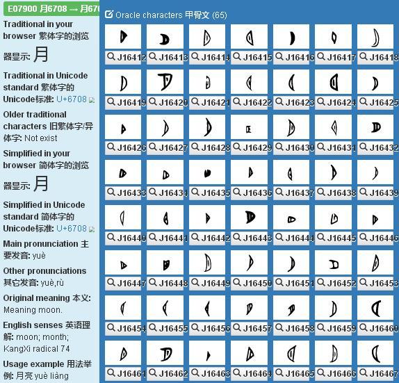 其中“Liushutong Characters 六书通的字(32)”编号为“QL37868”的“月”字更是与上述石刻图形达到了非常高的相似度。