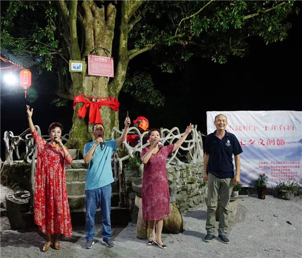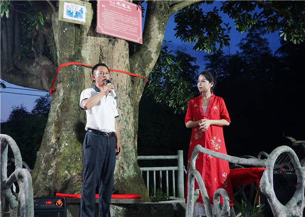 新华村党支部书记张公榜和木莲王府民宿的负责人张建华在晚会上也做了精彩发言,他们说,感谢这次七夕文创节给千年木莲王带来了生机勃勃的文化滋养,也期待锦心文创团队能有更多更精彩的活动创意为乡村民宿产业的发展进行文化赋能。