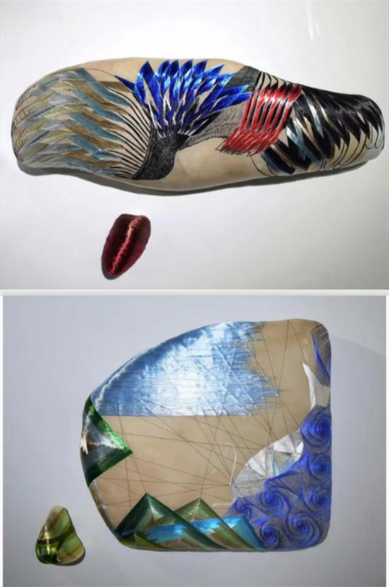 蒋昀格:疫情让我想到病毒细胞的分裂。随后大家就像诺亚方舟一样,同舟共济,同时每个地方有各种各样的动物基因,所以我就把《山海经》当中许多动物比如龟啊,虎啊等,包括人类的基因用纤维艺术表达出来。这是一种生生不息的概念。