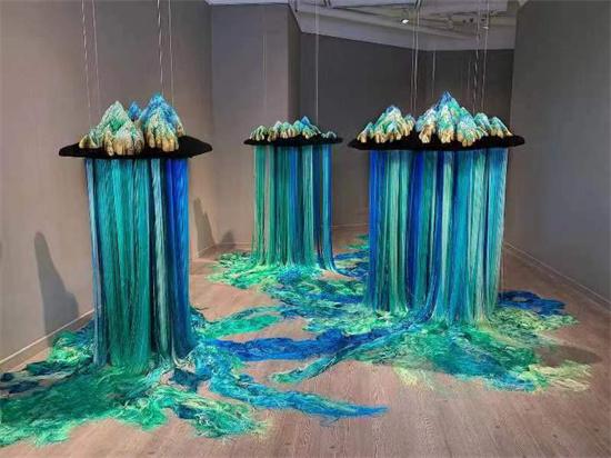 蒋昀格 毕业于中央美术学院实验艺术学院,现居上海。擅用纤维、丝线制作各种奇特的装置,使用中国传统工艺创造出明媚多姿的山水镜像,渲染着瑰丽神幻的艺术氛围。
