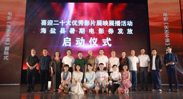 2022年8月7号,优秀影片展映展播暨电影《矢志不渝》首映式在浙江省嘉兴市海盐县海盐大剧院圆满举办。本活动由中共嘉兴市委宣传部指导,中共海盐县纪律检查委员会、中共海盐县委组织部、中共海盐县委宣传部主办,由中共海盐县委直属机关工作委员会、海盐县文学艺术界联合会、海盐县教育局、海盐县文化和广电旅游体育局协办,由浙江万犇影视文化发展有限责任公司、海盐县时代电影有限公司承办。