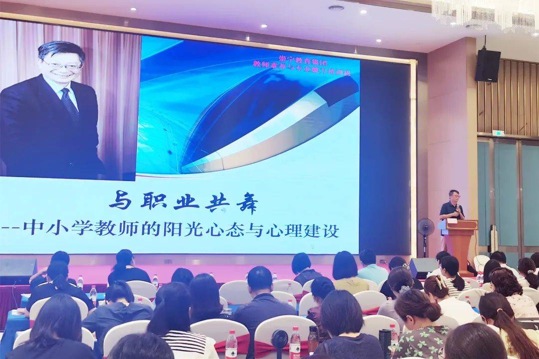 05 心理建设 “永远相信美好的事情即将发生!”南京师范大学赵凯教授的寄语开启了8月15日的培训之旅。赵教授以《与职业共舞》为题带来了一场教师阳光心态与心理建设的专题讲座,分析了教师的压力源和影响应对压力的因素,开出了压力管理与心理建设的良方。赵教授以流畅、智慧、幽默的语言,广博的学识,肆意的激情,鼓励老师们向阳而行,向暖而生,积极构筑师生心理健康防护墙。
