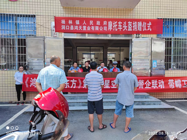 洞口县鸿天置业有限公司执行董事、第十九届县人大代表黄孝为同志为杨林镇捐赠头盔200顶。仪式上,杨林镇党委副书记、镇长肖程同志作了主题发言并对捐赠者的慷慨解囊行为表达了由衷的感谢。洞口县交警大队石江中队指导员钟须艾同志提醒广大驾乘人员,为了您和家人的安全,请自觉佩戴安全头盔。石江交警中队也将加大对交通违法行为的执法力度,坚决做到发现一起、查处一起,维护好辖区内良好的交通秩序。