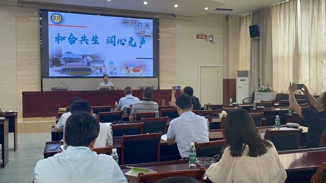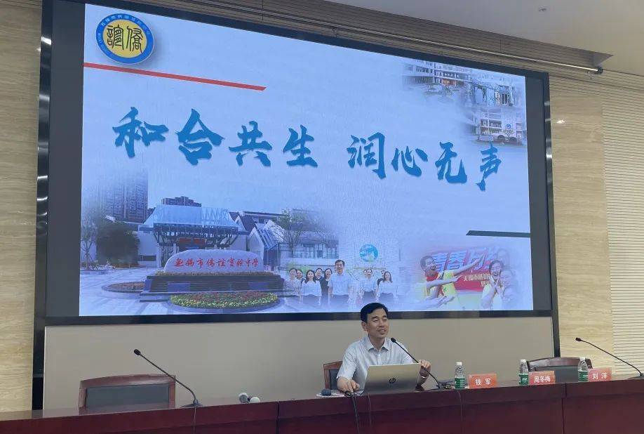 2022年8月9日, 江苏省初中名校长工作室(陆海军)暨江北新区初中名校长工作室一行来无锡市侨谊实验中学参观交流。 《和合共生 润心无声》 钱校长作报告