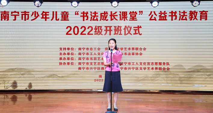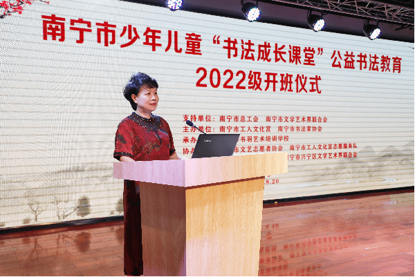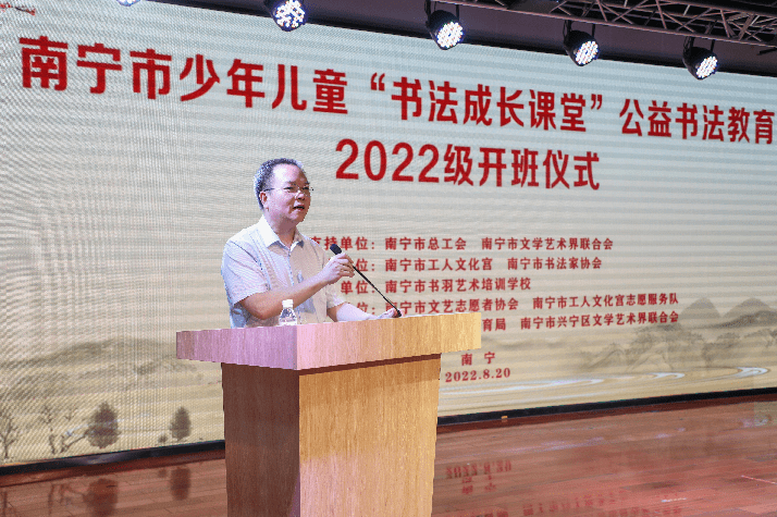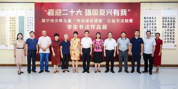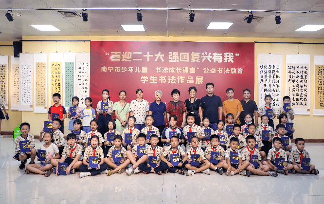 由南宁市书法家协会、南宁市工人文化宫共同举办的南宁市少年儿童“书法成长课堂”2022级开班仪式/2021级结业典礼暨“喜迎二十大 强国复兴有我”学生书法作品展于8月20日在南宁工人文化宫举办。