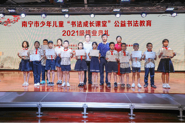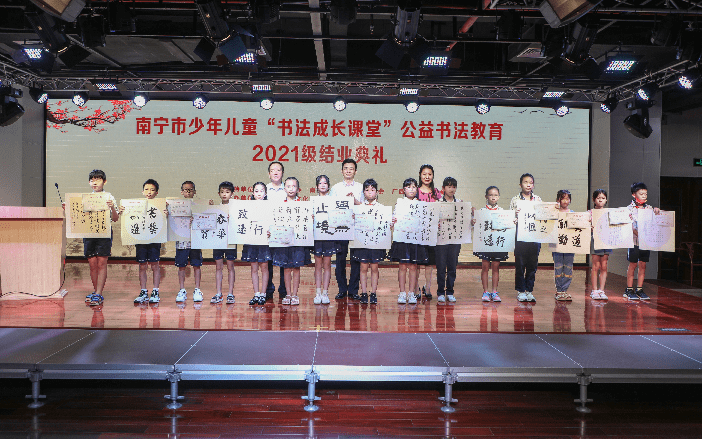 南宁少年儿童“书法成长课堂”是在南宁市文联倡导下,由南宁市书法家协会联合南宁市少年儿童图书馆、南宁市工人文化宫、南宁市书羽艺术培训学校共同开办的少儿书法公益学堂。其宗旨是为推进南宁市小学书法基础教育和普及,培养少年儿童对中国传统文化的热爱,提高少年儿童文化素质及艺术修养,以社会力量和公益支持方式办学,为学生提供为期一学年的免费书法学习,“书法成长课堂”至今己举办8年,有900多位学生来到这里学习。