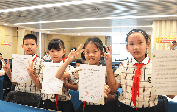 现场还为 2022级“书法成长课堂”新生举办了开班仪式。2022级学生全部来自兴宁区各小学推荐,经过公开面试、择优录取,也即将在9月来到工人文化宫,开始未来一学年的书法学习。新生们高兴的领取《录取通知书》。