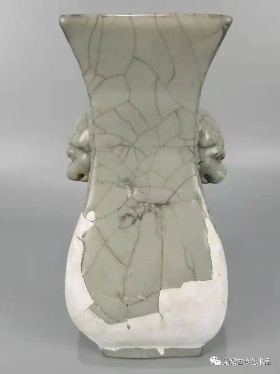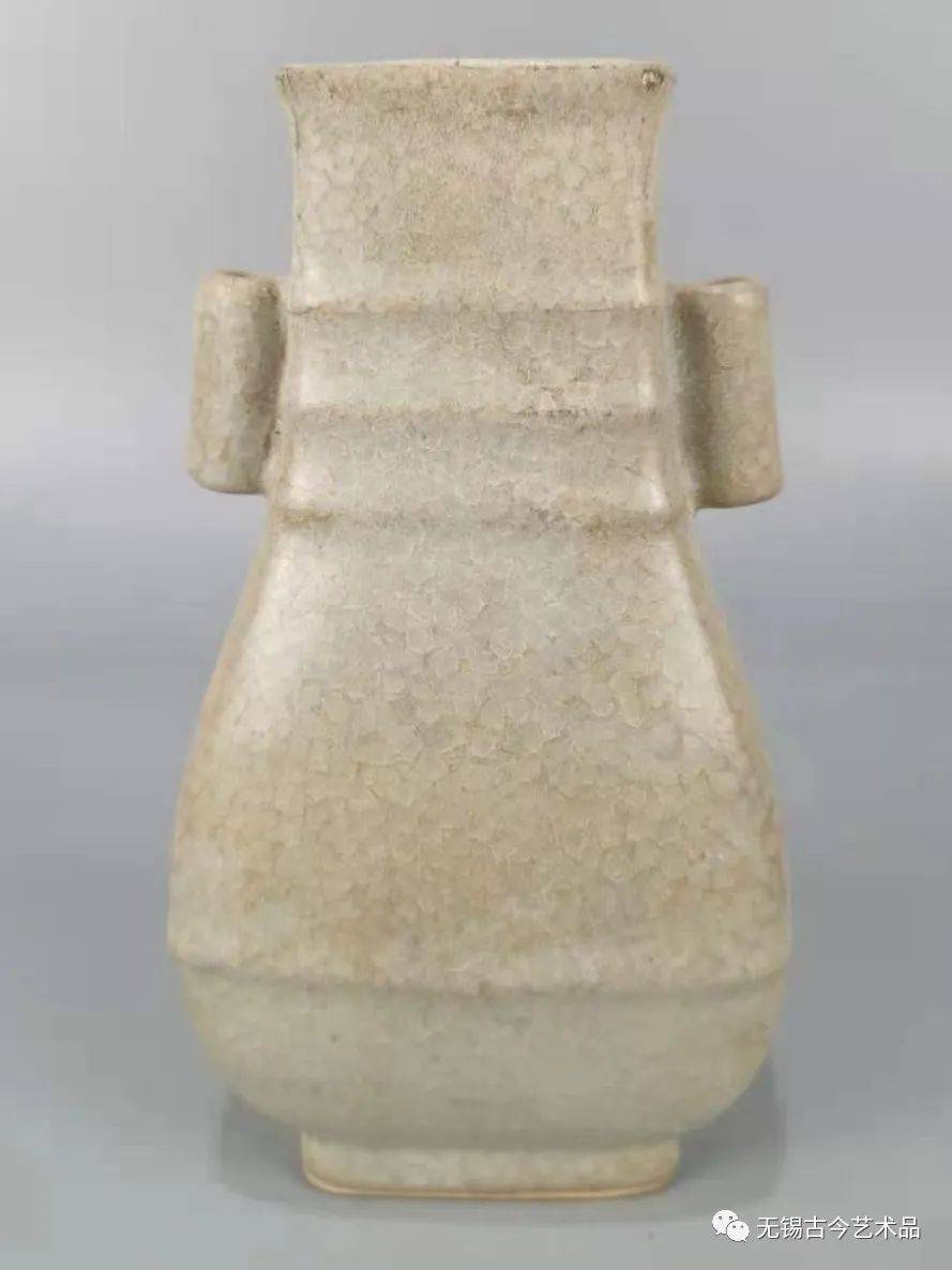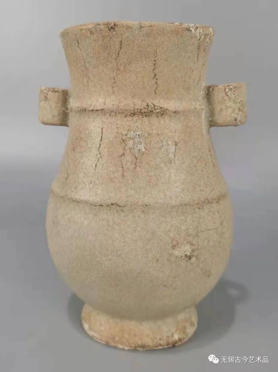 宋代(960~1279),创建五大名窑八大窑系,烧制成功举世闻名的顶级瓷器。在国内外的拍卖场,五大名窑之器成交价少则千万,多则上亿元。汝、官、哥、钧、定五大名窑中排名第二的官窑瓷器,可分为北宋官窑和南宋官窑。北宋官窑也称汴京(河南开封)官窑即北宋政和新城礼器,有宋徽宗皇帝亲自设计监督烧制的取代青铜器的礼器,用于祭祀。目前已知国内外官藏北宋官窑器仅四件。南宋官窑即“郊坛下官窑”和“修内司官窑”二处。相比北宋官窑,南宋官窑瓷较为多见,浙江杭州有南宋官窑博物馆,展示的出土瓷器标本没有一件完整器。 无锡古今艺术品鉴定评估有限公司经过二十多年的努力,幸得北宋与南宋官窑瓷器各三件,现报告如下: 北宋官窑(政和新城礼器) 1. 月白釉弦纹贯耳瓶 尺寸:高18.6厘米