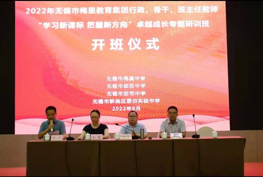原标题:学习新课标 把握新方向——无锡市梅里教育集团行政、骨干、班主任教师卓越成长专题研训 2022版新课标是未来十年课改指挥棒,是教师读懂新教材、新教参背后逻辑基础,是教师撰写学期目标、单元目标、课时目标的重要参考,课标中的教学提示、教学建议是教学设计的重要依据,课标中的学业质量标准是教师作业设计、命题设计的重要标准,若教师欲紧跟教育大势,与时俱进做一名称职优秀教师,首当其冲的就是阅读课标、理解课标、运用课标。 为进一步将新课标学习落到实处,更好地培养一支高素质、专业化、创新型的教师队伍,梅里教育集团于2022年8月20日至23日开展了“学习新课标 把握新方向”无锡市梅里教育集团行政、骨干、班主任教师卓越成长专题研训。