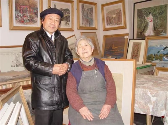 “一对天鹅飞向远方,飞向丝绸之路,捕捉友谊的芳香……”这是1989年11月底,西部歌王王洛宾为途径新疆的北京画院画家赵以雄、耿玉昆伉俪谱写的赞歌。为了在大雪封山之前跨过红其拉普山口,两位画家只能在乌鲁木齐停留一天,王洛宾头天晚上用钢笔赶写出这首简谱歌曲,专门为两位远道而来的观众组织了一场别开生面的家庭音乐会,祝福他们一路平安。 耿玉昆就是我70年前上小学时的美术启蒙老师。那是1952年,我10岁时正上小学四年级,学校来了一位刚从师范毕业,身材苗条,面容清秀,明眸皓齿,梳着两条长发辫的图画老师,那时她只有16岁。后来知道她出生在河北宁普一个书香之家,从小心灵手巧,酷爱绘画。她教我们“画”写生素描,从铅笔线描到光影体积。那时学校的条件很差,只能画一些随手能找得到的静物,如蓝球和手榴弹,喷壶和笤帚,瓜果蔬菜等等,有时也让同学轮流作模特儿,画头像。她和蔼可亲,像大姐姐一样对我循循善诱,我也画得十分入迷,提高很快。为迎接市里“六一”儿童画展,我画了一幅头戴钢盔,双手紧握冲锋枪的解放军战士。可是涂完颜色之后却越看越难看了,自已找不到原因,急得只想哭。耿老师抚着我的头亲切地说:“别着急,你涂的颜色很好,只是忘了勾下巴颏的轮廓线,脖子和脸连成了一片。你看—”,她接过毛笔,在下颏勾了一条轮廓线,脸和脖子便分开了。“解放军叔叔又好看了!”我高兴得直拍手。后来这幅画在市里展出获奖,更提高了我对画画的兴趣。 ![]() 赵庆勋,耿玉昆,赵认雄,邯郸二中美术老师许平。在楼下装满了写生画材的北京2227普车前留影。 耿玉昆老师后来如愿以偿,在1955年考入中央美术学院版画系,我则先后升入中学和艺术学校,并在1959年被保送入天津美术学院。往返京津,也就多了顺路去北京看望老师的机会。耿老师总是不厌其烦对我带去的画作细加指点。1960年耿老师毕业时,和油画系的高材生赵以雄在画室举行了简单的婚礼,并进入北京画院工作,开始了以中国古代文明为代表的丝绸之路的创作活动。半个世纪以来,二位老师往返丝路26次,行程百万公里,作画上万幅,写了几十本日记,拍摄了大量摄影、录像资料。著名画家吴冠中曾说:“我喜欢他们无论在风景、人物中都具有的祖国泥土气息”。中国美术馆特意为他们举办了三次丝调之路写生展,中央电视台“夕阳红”两次专题报道。他们出版多部画册,大量作品被海内外各大美术馆、博物馆收藏,成为中国最富盛名的丝路画家。 ![]() 赵庆勋(右)与耿玉昆赵以雄二位老师合影