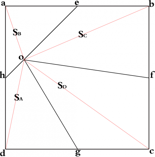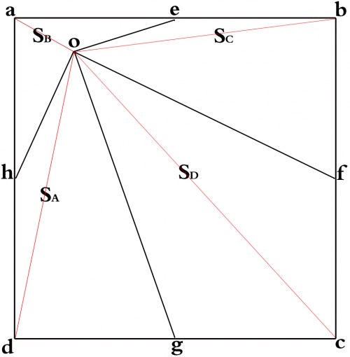 图5 所以SA+SC= Shod+ Sdog+ Sfob + Seob = Saoh +Sgoc+ Scof + Saoe = Saeh+ Sfogc = SB+SD 即:SA+SC=SB+SD