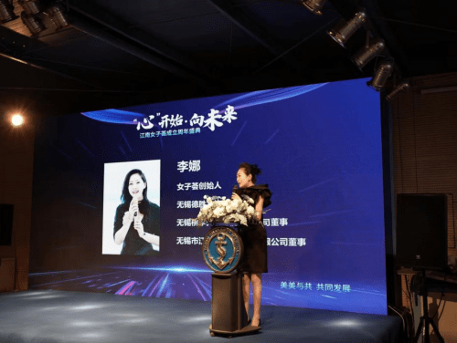 (江苏省旅游协会副会长、无锡市旅游协会会长王洁平先生) 随后,江南女子荟创始人李娜女士上台致辞。李荟长在致辞中指出:女子会的成立就是一群兼顾家庭和事业的新时代女性,致力于用自己的光芒照亮前行的道路。三年时光匆匆而过,江南女子荟组建、培育的三年,既是艰苦奋斗、挑战连连的三年,也是充实丰富,收获满载的三年。感谢各位领导指引方向,让我们看到自己的不足;感谢姐妹们一路同行,让我们在这里得到滋养与成长;感谢缘分让我们相识相知,在这里多了一份爱的力量。未来江南女子荟将不忘初心,建立好商学院,守护我们江南江南女子荟女性朋友成长。同时继续在慈善公益的道路上继续传递温暖正能量,履行江南女子荟社会责任。并横向社会各界活动,为企业衔接更多的资源,争取新的发展机遇,助力企业发展。通过视频号、抖音号、公众号同步输送江南女子荟的文化内容、宣传江南女子荟。让更多优秀有爱的女性加入我们,凝聚成一支特有的女性社会团体。