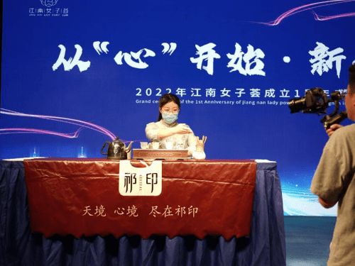 (江南女子荟所有荟长切蛋糕欢庆) 伴随着江南女子荟茶艺表演,江南女子荟周年庆典文艺演出正式开始。江南女子荟成员在工作之余,精心排练,精彩纷呈的节目应接不暇,充满着江南女子荟大家庭的活力、温馨与感动。