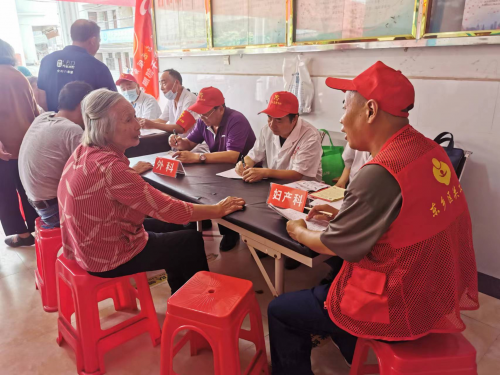 上图:参加义诊的区人民医院老党员老专家合影留念 ( 陈和平 摄) “我今年85岁,你们免费为我们老百姓检查身体,真是谢谢哦!”欧阳云老婆婆的朴实话语说出了大家的共同心声。6月29日上午,在江西省抚州市东乡区黎圩镇卫生院,由区人民医院退休党支部书记王俊峰率领的近20名老党员老专家志愿者服务队,或身穿红色志愿者服装,或头戴志愿者红帽子,或佩戴志愿者袖标,分两边一字儿排开,为群众量血压、测血糖、做心电图,提供健康咨询,忙得不亦乐乎。据悉,此次义诊活动由东乡区老年科协、黎圩镇党委、政府联合主办,区人民医院退休党支部独家继承办。活动主题是:喜迎二十大,福泽老百姓。