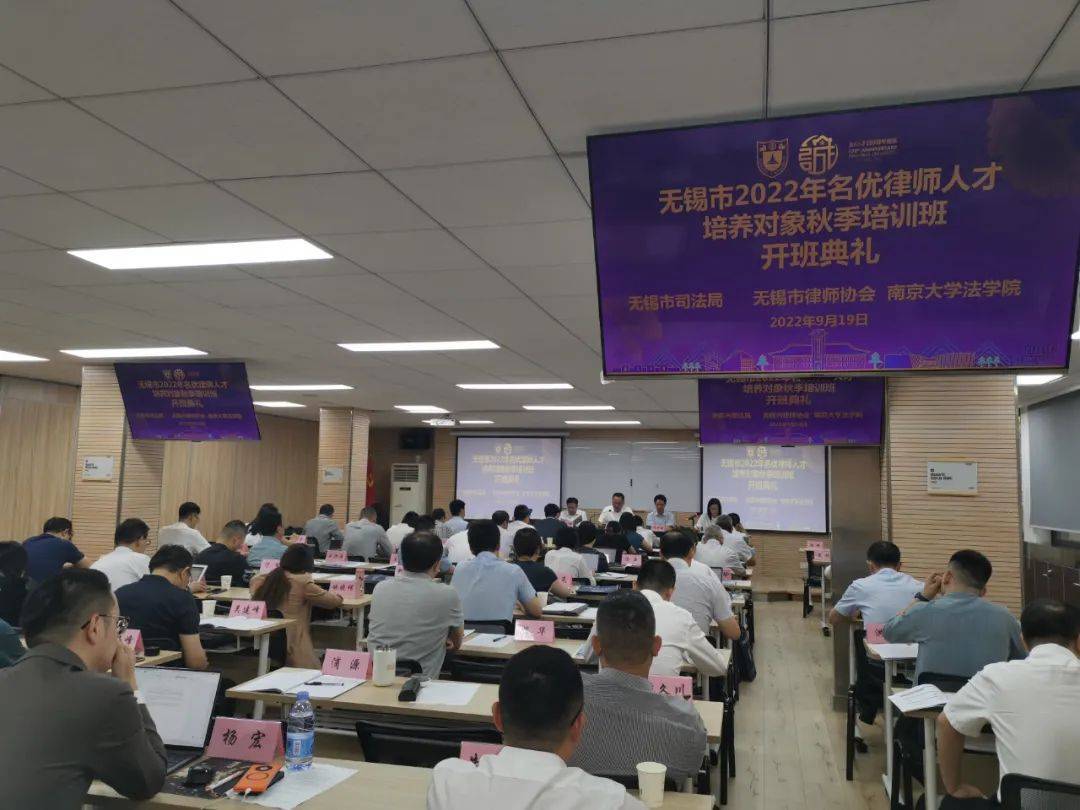 9月19日, 2022年无锡市名优律师人才培养对象秋季培训班在南京大学法学院开班。无锡市司法局党组书记、局长谢海华,南京大学法学院院长叶金强出席开班仪式。