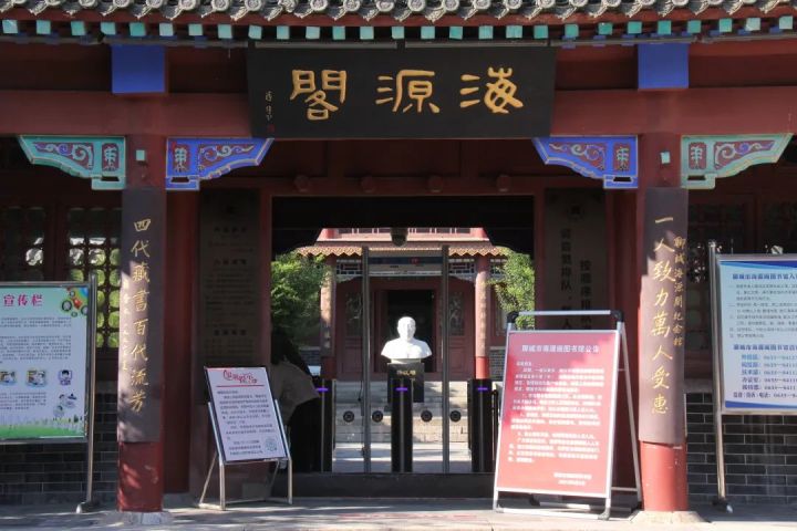 这时随行的官兵,一个个也随着冲上前去,民工们也不犹豫了,逃走的人也赶了回来,都一起向激流里扑去。人心齐,泰山移。经过一番拼死搏斗,决口终于被堵住了。 恰巧这时皇上派来的河院赶到了现场,人们纷纷向他报告了杨以增的功绩,河院当即拿出了几万两银子赏给杨以增。杨以增虽居官多年,但他两袖清风,还从没拥有过这样多的钱。 他从小好学,并有爱书和藏书的习惯。平时,他住的屋子里里外外,床上床下,橱里橱外均放满了书籍。因为每次他遇到善本珍籍从不惜重金购买,书越来越多,因存放不善,有些书受潮变质,有些书虫蛀鼠咬,他常常痛惜不安。 ![]() 河院的奖赏,使他猛然产生了一个想法,如果用这些钱建造一个藏书楼,把家中众多的书籍入柜存放,使其免遭潮湿、鼠咬,为世代所用,岂不是一件益事? 于是年过半百,已知天命的杨以增取“涉海而能得所归者”之意,给书楼取名“海源阁”,并且亲笔手书海源阁的匾额,至今依然可见! 后来杨以增的儿子杨绍和、孙子杨保彝又行扩建,并继续购买了许多图书,使藏书量大大增加,从此“海源阁”也名扬全国了。 03 这里是运河上漂来的藏书楼 ![]() 《老残游记》的作者刘鹗对海源阁藏书楼怀有极大的兴趣与崇敬,曾经专程来到东昌府拜访,然而那时的海源阁并不向外界开放,只有几位与杨家交往甚密的人才能进入藏书楼,所以,刘鹗此行并未得偿所愿。