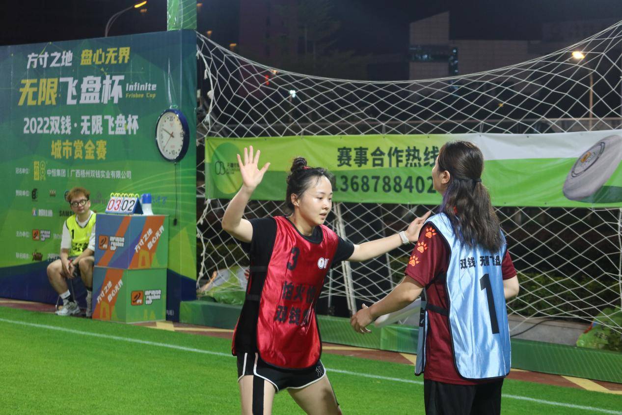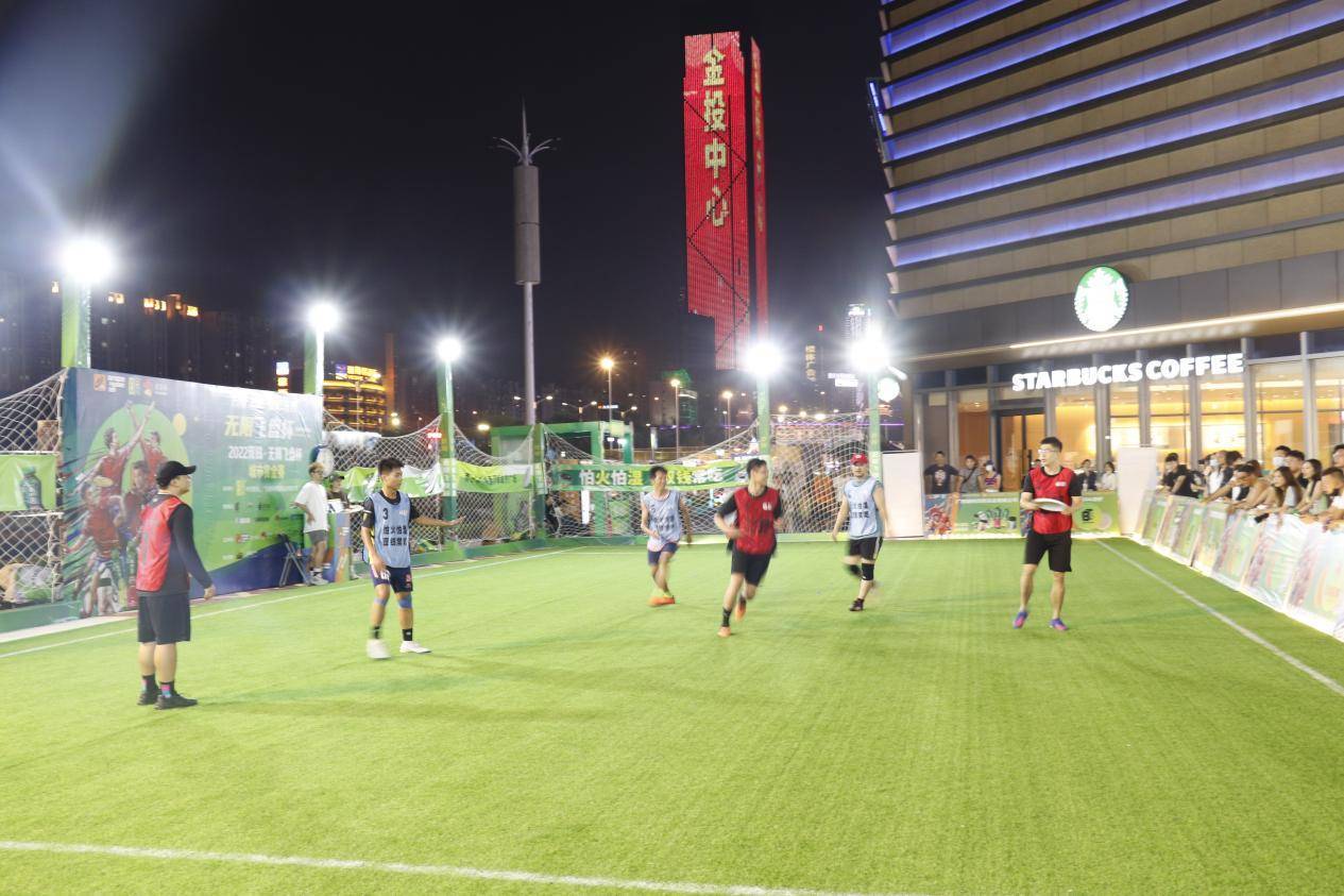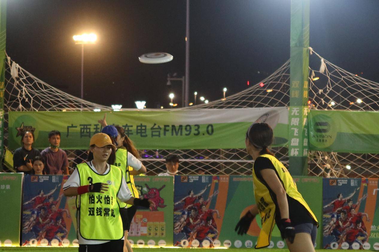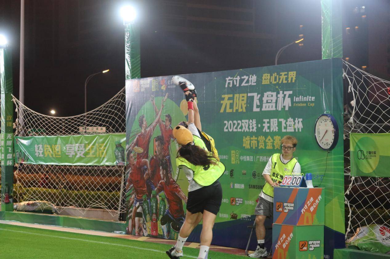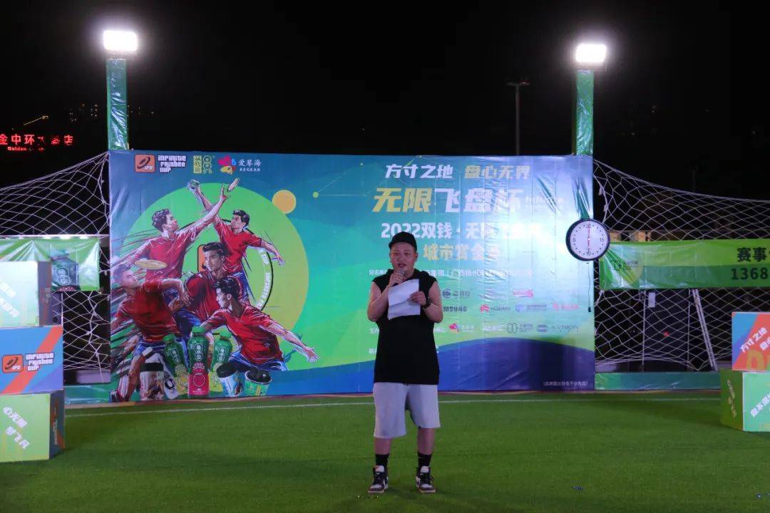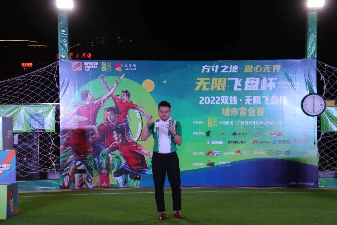 金秋九月,激情碰撞;2022年9月22日晚19点,为期将近一个月的双钱·无限飞盘杯城市赏金赛(南宁站),在广西南宁民族大道华丰城爱琴海城市广场正式开赛! 本次赛事由广西飞盘体育文化有限公司主办;广西无疆传媒有限公司、广西南宁无限视界文化传播有限公司、无限飞盘组委会承办;南宁华丰城爱琴海城市广场协办;由中恒集团丨广西梧州双钱实业有限公司冠名;BOOM DANCE CLUB、云端MX-城市高空会客厅、臣·体检、SNOW-GET城市滑雪、刺头特饮、智桂通APP、九千万饮用天然泉水、SAMSUNG、HUAWEI、品匠家居装饰集团、饭桌故事鼎力赞助。广西私家车电台FM93.0、大南宁APP联名媒体全程支持。 随着夜幕降临,参赛选手们开始进行签到,本次赛事也拉开了帷幕。19点过,广西飞盘体育文化有限公司总经理钟伟上台发言。借本次赛事的机会,呼吁更多的人参与到飞盘运动当中。