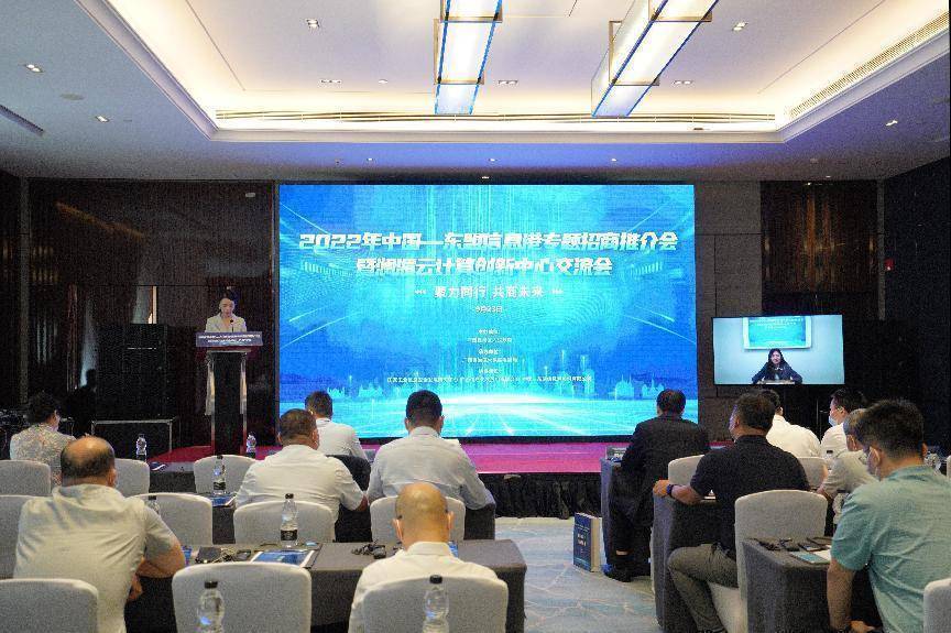 2022中国—东盟信息港专题招商推介会暨澜湄云计算创新中心交流会现场。张春梅/摄影 何予平介绍,本次大会也是澜湄云计算创新中心交流会,澜湄云计算创新中心已在老挝、柬埔寨、缅甸落地云计算中心,澜沧江-湄公河合作机制后续必将加速推进我们同东盟国家工业和信息化领域合作。