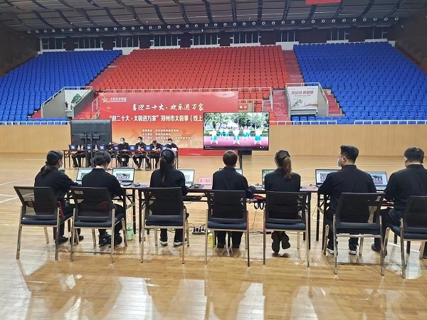 由郑州市体育局主办,郑州市体育分会、郑州市武术协会承办的郑州市“喜迎二十大 太极进万家”太极拳健身线上大赛于2022年9月23日,在郑州市体育馆开幕。