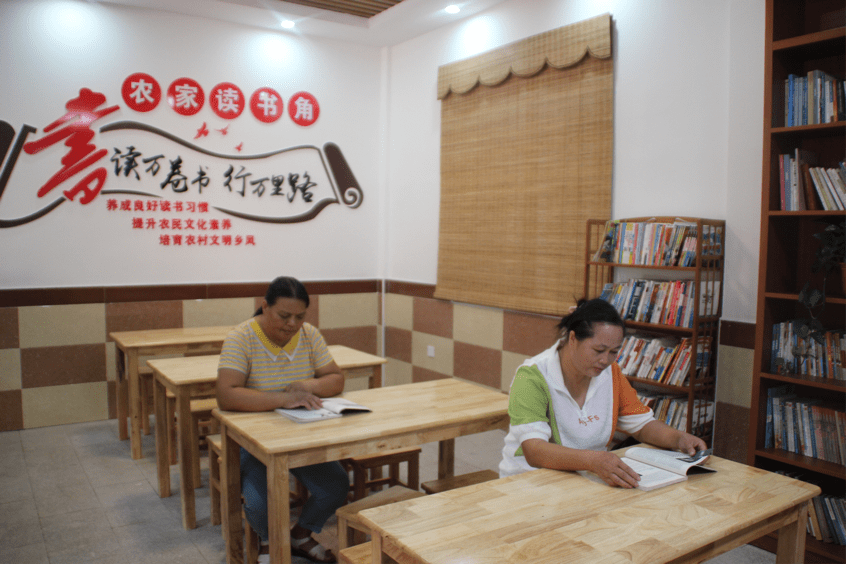 “农家书屋”+群众读书角。张春梅 摄影 德保县:建设书屋“小阵地” 酝酿振兴“大粮仓” 近年来,德保县在自治区、市委、市政府的正确领导下,按照上级关于创新实施文化惠民工程的工作部署要求,通过建设书屋“小阵地”,狠抓农家书屋建设和跟踪管理,使农家书屋活起来,真正成为农村传播先进文化的阵地、农民学习科技知识的课堂,发挥了小书屋大阵地、小书屋大作为、小书屋大文章、小书屋大平台的作用,为农村群众提供免费开放和免费读物,丰富了群众的精神文化生活,酝酿乡村振兴“大粮仓”。坚持“建管并重”,提升“姓农”形象,打造示范引领,突出“建在农家”特点,结合文明创建,探索“农家书屋+”模式,致力创新创优,营造“乡贤岗”浓厚氛围,明确“三好”目标,筑牢“乡村振兴”文化基石。