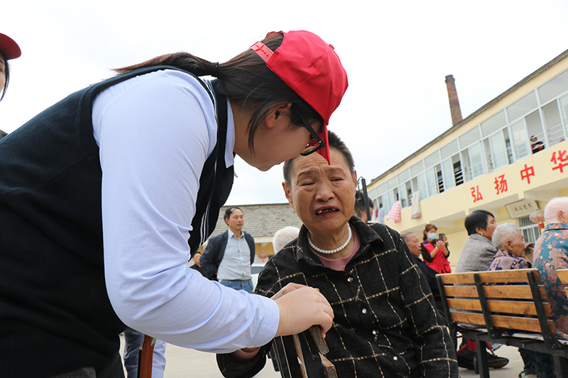 所有人员来到敬老院后,或搀扶,或推车,帮助老人们稳当地在院子里坐下来,与老人们聊天,关切地询问老人们的需求。