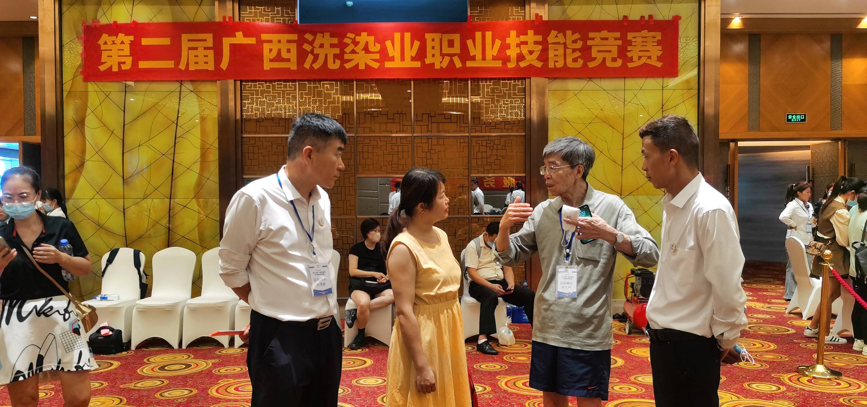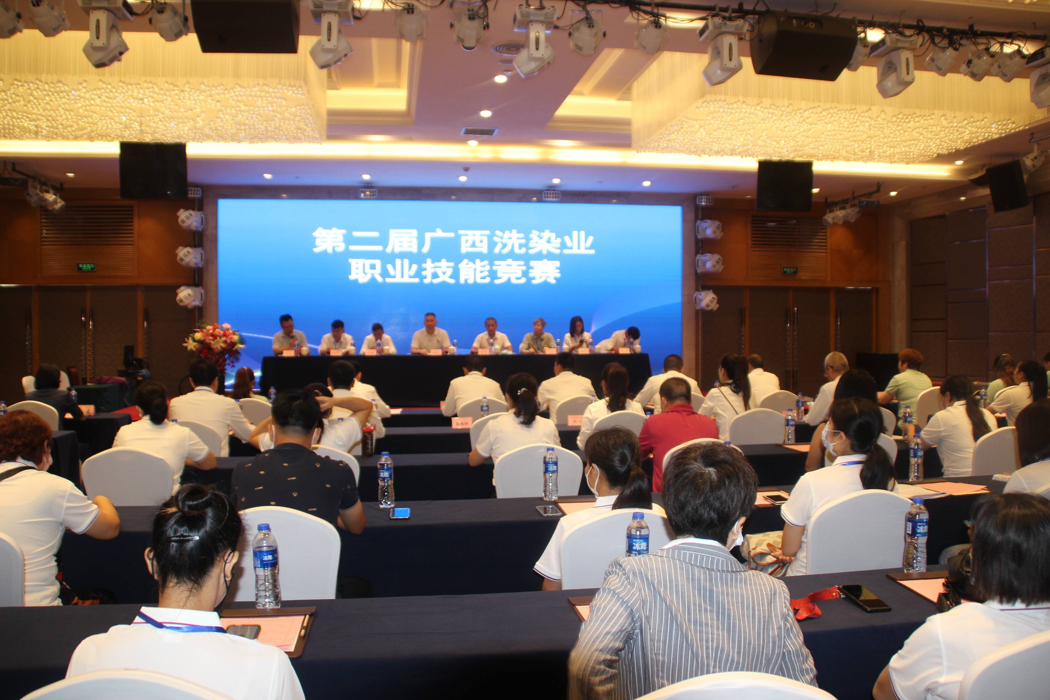 第二届广西洗染业职业技能竞赛在南宁成功举行。 据介绍,本次大赛特邀中华传统技艺大师 齐大同任总监察长,青岛源洁洗衣工厂史茂新任总裁判长,并由来自全国洗染行业8位专家担任裁判。全区共有50多名选手和4位指导教师参加。比赛分为前台服务竞赛、服装熨烫竞赛、皮革护理竞赛和污渍去除4项比赛。