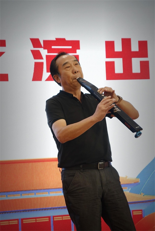 文艺演出精彩纷呈,舞韵江南艺术团队长孙盈盈带领舞蹈队为大家献上文艺大餐。历永庆的乐器吹奏掌声不断。抗美用相机记录下这精彩瞬间。