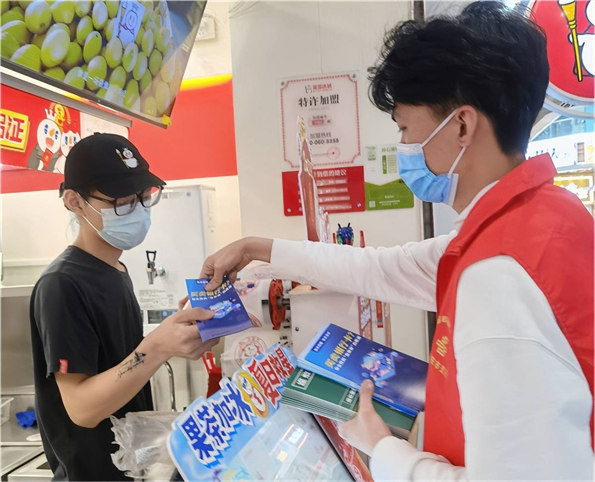 (志愿者向商店派发宣传折页)