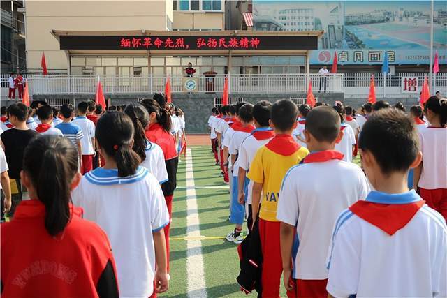 廖慧敏老师向学生宣讲烈士纪念日的由来,学习革命先烈为祖国和人民挺身而出、遇强敌而不惧、临死神而不屈的精神,并号召全体师生默哀一分钟,寄托哀思。优秀少先队员付妍晓晓、余诗怡、程梓涵同学朗诵《我们是共产主义接班人》,全体学生一同唱响《我们是共产主义接班人》。