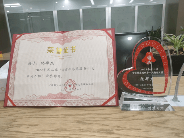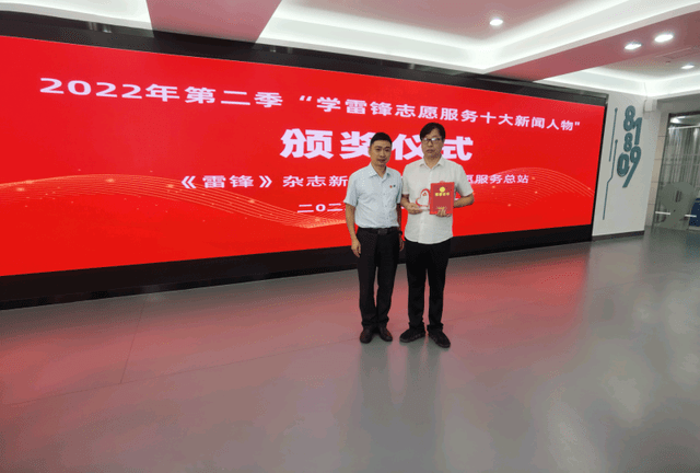 为表彰先进,激励社会志愿者、志愿者组织积极参与学雷锋志愿服务活动,《雷锋》杂志新时代学雷锋志愿服务总站于2022年8月开展2022年第二季“学雷锋志愿服务十大新闻人物”评选活动。经全国各地《雷锋》杂志新时代学雷锋志愿服务驿站推荐,各地服务站审核,由学雷锋总站组织专家组评审,宁波颐和健康集团有限公司董事长阮华杰被授予为2022年第二季“学雷锋志愿服务十大新闻人物”。