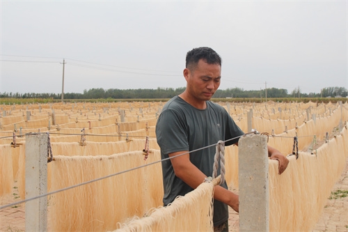 晋王庄村是传统粉条专业,有多年历史。王凯利从父亲手里接过祖传的手工制作粉条手艺,由于坚持手工制作的精髓,王凯利的粉条推出后,受到了社会各界的一致好评。