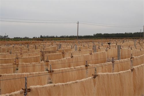 又是一年秋收时,硕果累累飘香来。9月27日,我们一行走进商丘市睢阳区冯桥镇吕庄村飞飞粉条厂,作坊沸腾,机器轰鸣,通过漂搅、过滤、加温,一排排粉丝挂满田间、院落,恰似一条白色飘带从天而坠。人们说,这里是“粉条王国”。