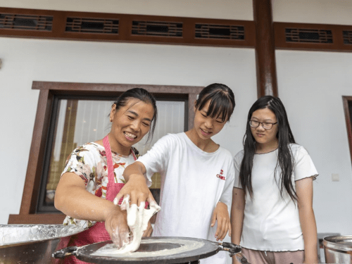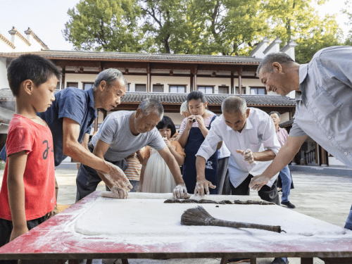 诗意农村,可敬老人,这是共富进程中精神富有的象征,惟此方可吸引离乡背井的年轻人。重阳老人节,重点在农村,老人的故事代代相传,古老的农村才能充满希望与生机。 三、美食“孝饼筒” 美意永传颂 樟花古称棠墅,都是别具诗意的美名。该村历史悠久,人才辈出,古建精湛,山水奇秀。起源于清康熙年间的“孝饼筒”,三百多年来代代相传,演绎着该村尊老敬老的许多爱心故事,远近传颂,争向效仿,成为樟花孝德兴村的最好见证。
