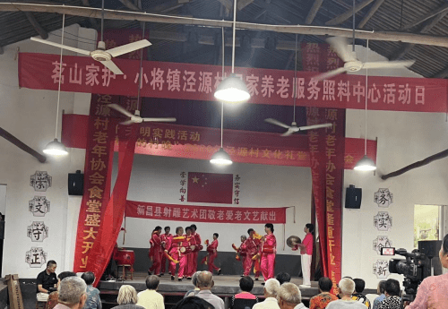 今天上午,绍兴市品牌社会组织的新昌县射雕艺术团专程到小将镇泾源村茗山·家护养老服务中心慰问义演。演出节目有舞蹈、小品、戏曲选段、戏曲歌曲独唱合唱等等。因节目内容丰富、品位高、演艺精又体现了对老人们的关心和爱护,从而受到大家的一致好评。现场掌声不断,喝彩连连,不但让老人们过上了一次有意义的重阳节,也让在场所有观众享受了一场文明健康的文化大餐!