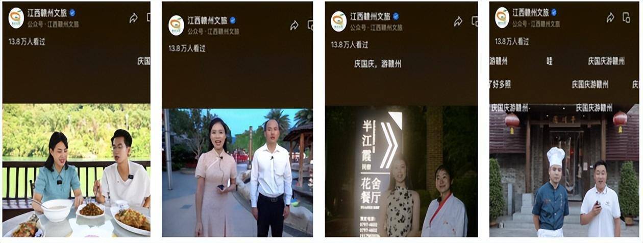 活动采取轻松愉悦的“云上推介”创新形式,市本级携手大余、兴国、安远、崇义、南康、上犹、于都、石城、全南、瑞金、赣县、会昌等县(市)分会场,不管是赏风景、泡温泉还是住民宿,都能让你沉浸式体验各地风情,近30多道赣南特色美食、小吃,引动全网网民食指大动,吸引了众多粉丝频繁互动,直呼“我要去赣州”“我要吃米粉鱼”网上网下嗨翻一片。