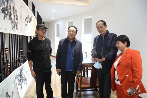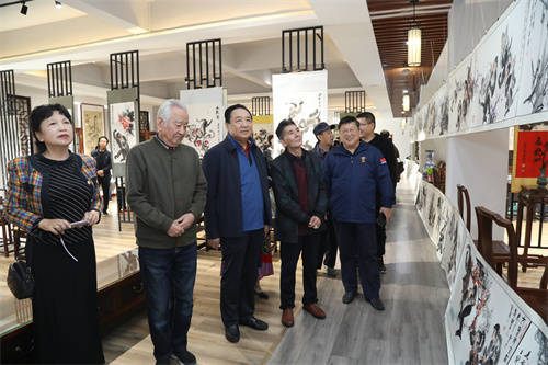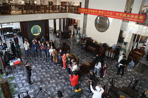 10月7日,“百猴献瑞 庆祝国庆 喜迎二十大”辛华美术作品展在青岛市城阳区204国道仙工坊红木艺术馆展出,这是岛城著名的“美猴王”画家辛华先生以《大圣归来》为主题创作的一组百米长卷颇有灵气的百猴图作品,以此献瑞国庆金秋的个人画展,也为岛城美术爱好者送上了一份精美的文化大餐。 本次画展由青岛李沧楹联艺术家协会、青岛李沧慧梦斋书画院主办,城阳仙工坊红木艺术馆承办,青岛栈桥酒业有限公司,青岛通胜源工贸有限公司等单位协办, 原北海舰队副政委傅渤海将军,青岛市书法家协会名誉主席邱振亮、仙工坊红木艺术馆董事长郑素芹、青岛市李沧区慧梦斋画院院长张慧以及近百位岛城热爱美术工作者和爱好者出席了开幕式。