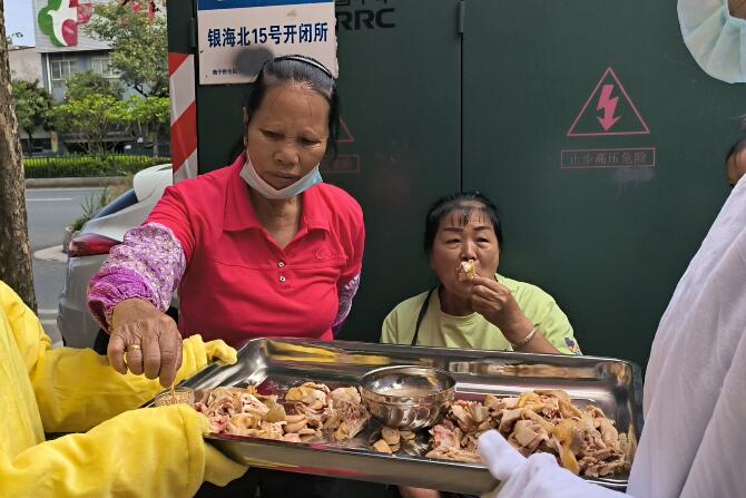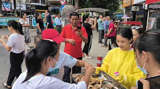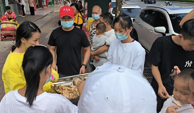 当天的免费吃鸡活动,吸引了众多的食客和市民围观