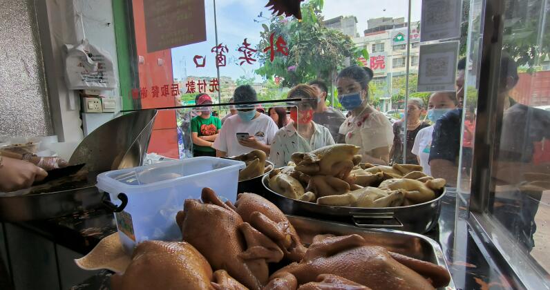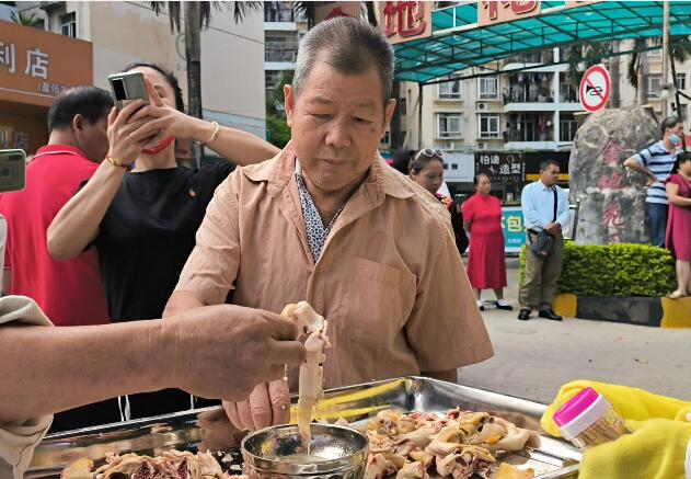 市民纷纷围观品尝竹盐鸡