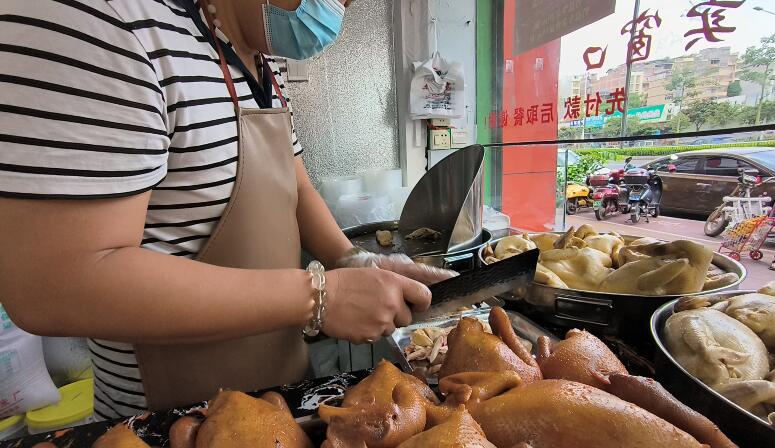 滴完水的竹盐鸡,也凉得差不多了,此时就可以切成斩块。