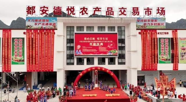 揭牌仪式 广西民族文化产业发展研究会副会长牙锋;都安德悦农产品交易市场董事长陆瑞权;云南鼎盛农业有限公司总经理赵余冰等领导上台点睛并为都安德悦农产品交易市场揭牌。 近年来,政府把更好服务群众作为一切工作的重中之重,扎实推进各项为民办实事工程项目,让发展成果更多惠及群众。高度重视农产品批发和零售市场的发展,将农产品市场作为地区的核心功能。农贸市场是农产品流通的最后一个环节,在流通升级转型和满足人民群众不断增长的消费需求中,具有重要的地位和作用。