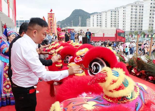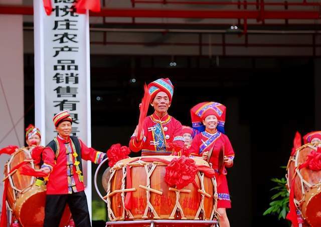 会鼓表演 开业庆典启动仪式上,雄狮吐瑞,盛世开源,精彩的舞狮表演点燃了观众的热情;国家级非遗项目“广西民间舞蹈一枝花”壮族扁担舞,以其独特的节奏变化,上下交织的打法和强烈的音响效果,赢得群众的喜爱;《红色山歌联唱》唱出了人民对党的感恩,对祖国的热爱;对幸福生活的向往和对国家的美好祝愿;鼓声隆隆,声撼八方,祈福纳瑞佑壮乡,国家级非遗节目马山壮族会鼓《鼓舞壮乡》多鼓齐鸣、场面震撼,令现场观众情不自禁热血沸腾。