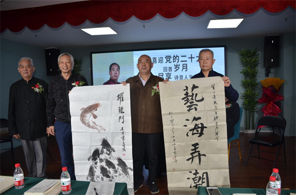在新书品鉴会现场,以古筝演奏开场,到场嘉宾欣赏了王景武先生新书部分作品,大河朗诵艺术团对《舞墨轩诗稿》精选片段进行诗朗诵,赢得观众阵阵喝彩!同时,现场嘉宾也为王景武先生赠送墨宝,为品鉴会更添诗情画意。